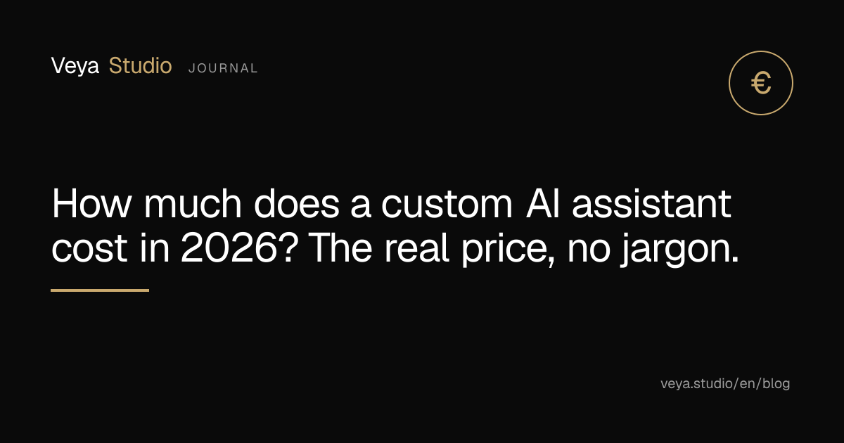 Real prices for a custom AI assistant in 2026: €5,000 to €80,000 depending on the vendor. Transparent breakdown, ROI math, and why 90% of quotes are inflated.