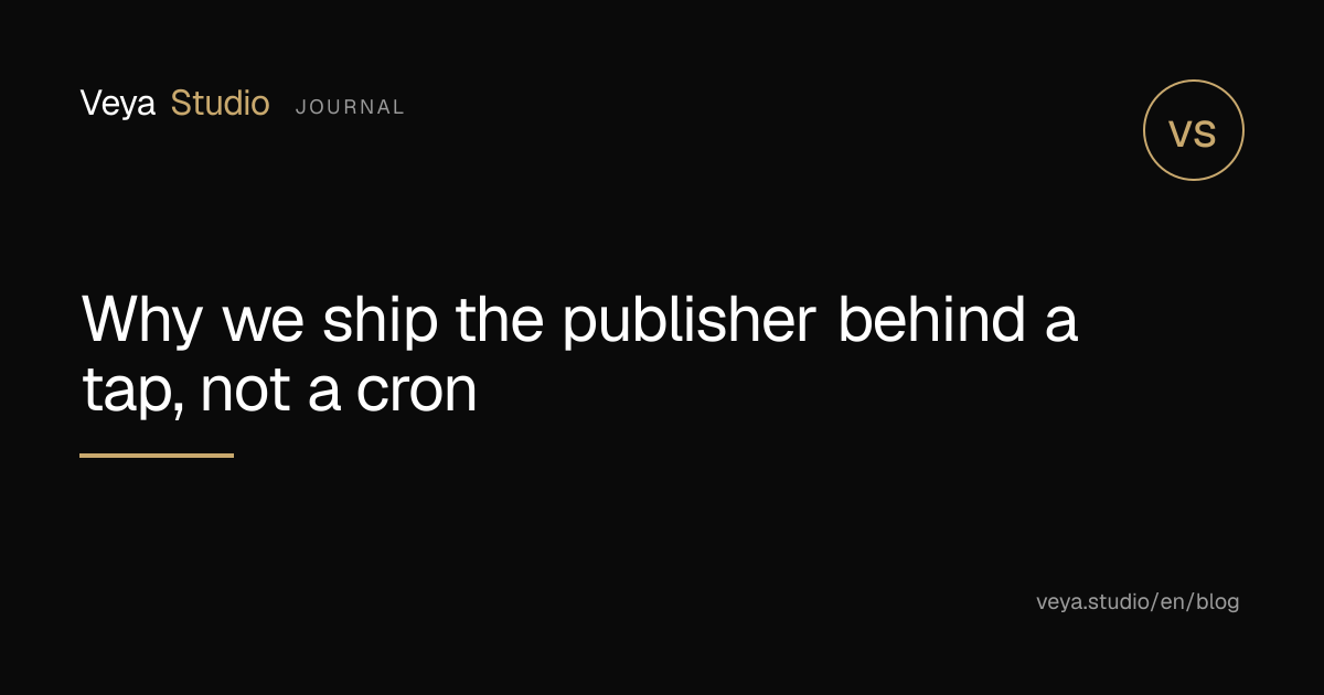smoke test for Day 4 publisher — write a 250-word piece in English titled \n \"Why we ship the publisher behind a tap, not a cron\" explaining how the marketing agent\n generates drafts but only Alaa